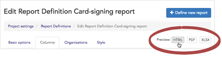 - Click a Preview button to see the new report in whatever format you prefer. We’ll choose HTML to view it on-screen immediately.