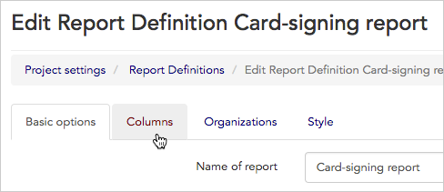 We want to add our new calculated column to our existing “Card-signing report,” so we’ll click the edit link.
