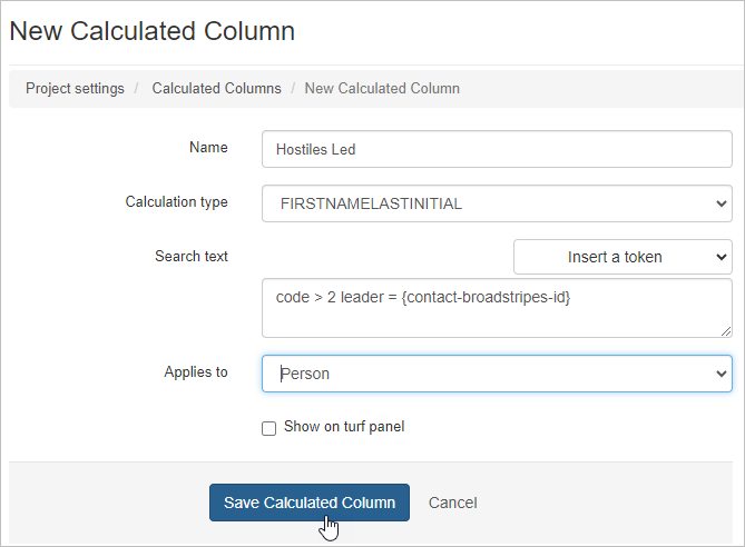 - Finally, we’ll check the Show on the turf panel checkbox so our calculated column will automatically appear on all users’ turf panels.