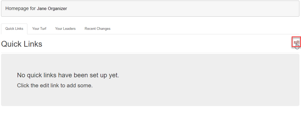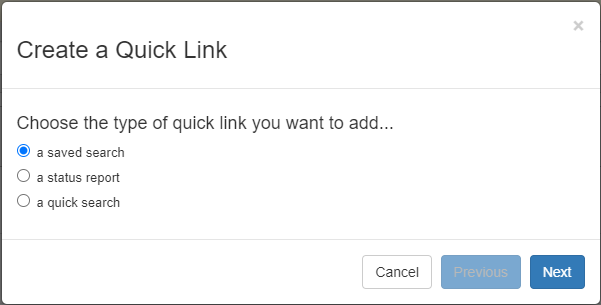 Quick Links offer a simple dashboard customized to your specific needs—a fast one-click entry point to your most frequent searches or reports. Configuring quick links is simple, and once it’s done, your customized quick links appear automatically, each time you log in. You can easily add new quick links to help you with the tasks you do most often. To get started with quick links: Click the homepage link in the navigational panel.