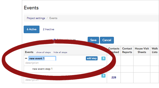 - For events that have several options: for instance, a petition drive might have the steps Signed and Refused so organizers know whether someone was contacted, even if they didn’t end up signing.
