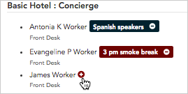 - You’ll see a list of all the workers at the organization. Scroll to one of the workers you want to include in your new group, and click the plus icon next to their name.