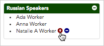 - To delete a member of the group, just hover over their name and click the minus sign icon that appears. !(images/SocialGrpDeleteMember.png)