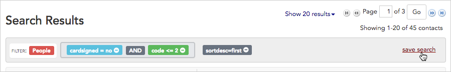 - Next, save the search. Click the save search link in the upper right corner of the search panel.