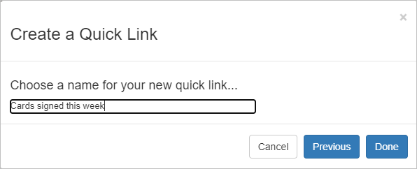 - Name the quick link. This is the name that will appear on the quick link button on your dashboard. Click Done to save.