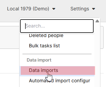 - Next, access Data Imports by clicking Settings > Data imports in the top-right corner of any page.