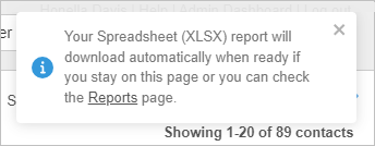 - You’ll see a message explaining that your spreadsheet report is being created and will download automatically.