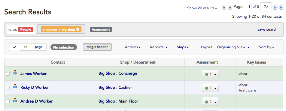 - All the workers who have an employment at Big Shop will appear in the Search Results panel.