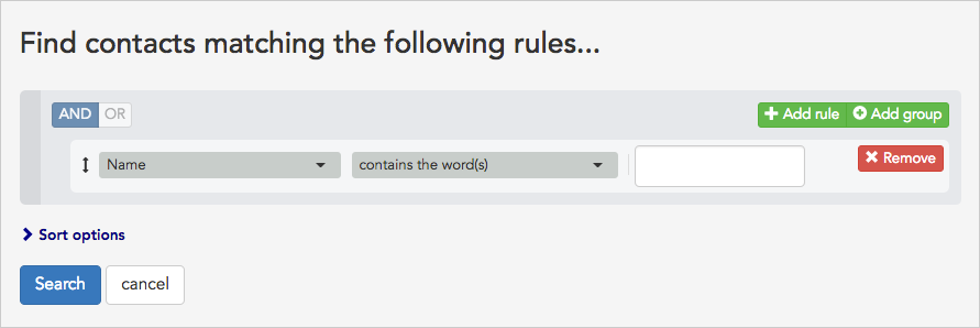- Leave the middle drop-down box as it is, with “contains the word(s)” selected. (This drop-down box contains what’s called the “operator”. We’ll cover other operator choices in more depth in another article in the knowledge base.)