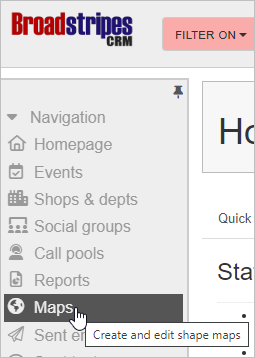 With Broadstripes’ Maps feature, you can easily view any list of people on an interactive map.- Start by clicking the Maps link on the navigation panel.