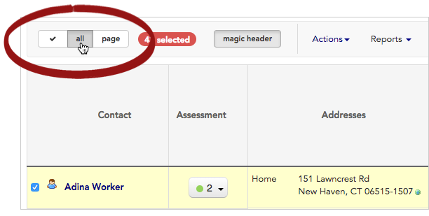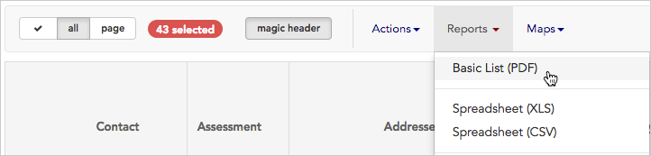 - Once your contacts are selected, click the Reports menu and choose Basic List.