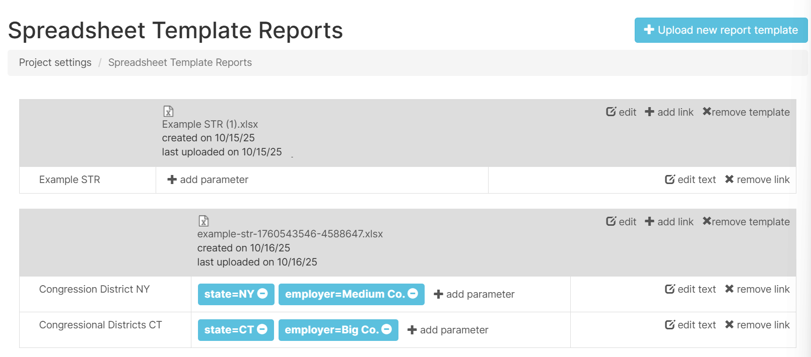 - Find your template in the list on the Spreadsheet Template Reports page.