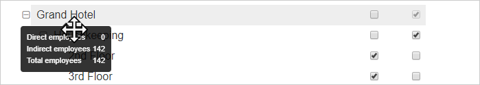 To make sure you understand where your workers are positioned in the shop structure (for instance, at the shop, department or sub-department level), you can hover your mouse over any department or shop and see how many direct and indirect employees that shop or department contains. This can help you decide what levels of a shop hierarchy in your report.Direct and indirect employees