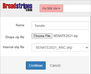 - In the Name field, type a name for the “shape group” that will be created to hold these shapes. The best names are clear and concise and contain few or no spaces, as they will become search terms. In this case, we will use “Senate”.