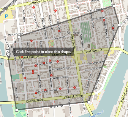 - Next, click on the map where you want your shape to start. Continue to click around the edges of the region you want to outline — each click will create an anchor point along the shape’s perimeter. Your shape doesn’t have to be perfect – Broadstripes can help you fit it to the streets on the map more closely in a later step. You can also go back later and manually adjust it.