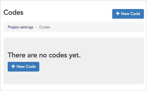 - The Assessment code index page will open, displaying all of the codes you have set up to measure workers’ support. You can view and manage your project’s codes from this page.
