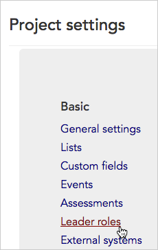 - Or, from the Project settings page, click the Basic > Leader roles link.
