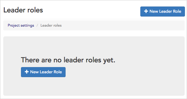 - If you haven’t yet set up any roles, your index page will open with a button to create a + New Leader Role.