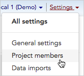 Click Settings > Project members in the upper right corner of any page.\