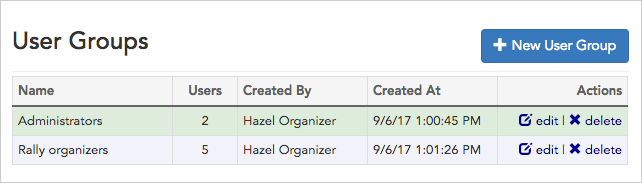 - See basic information about existing user groups like how many users they contain, who created them, and when.