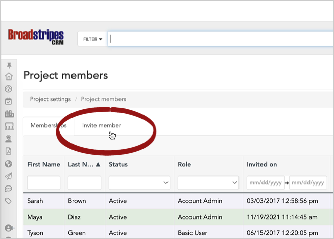 After setting up your project and importing your data, you’re ready to bring users on board. The topics in this section will help guide you through what to consider when adding users to your project and provide simple step-by-step instructions on how to invite and manage them. As a project admin, you have the ability to invite new users to your Broadstripes project. It’s important, obviously, that these be people you trust with access to the information in the project. Before you invite a new organizer, take a moment to think about whether you want them to have the same privileges that you do, and how they’ll be interacting with the project: will they be organizing in the field, or based in the campaign office supporting other organizers?Video: Invite a new user