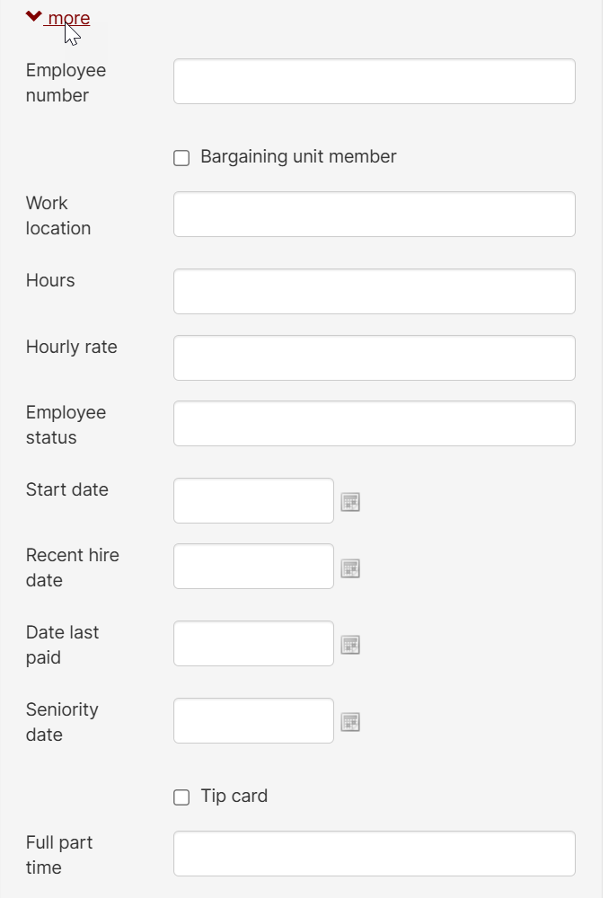 - Broadstripes is able to record a number of additional employment details including employees’ hourly rate, start date, and whether or not they are part of the bargaining unit. Click the link labeled more to view or update this optional information.