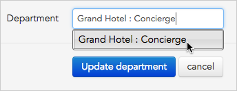 - When prompted for the department, begin typing the department name in the text box. Broadstripes will suggest names that match. Select the department from the list and click Update department.